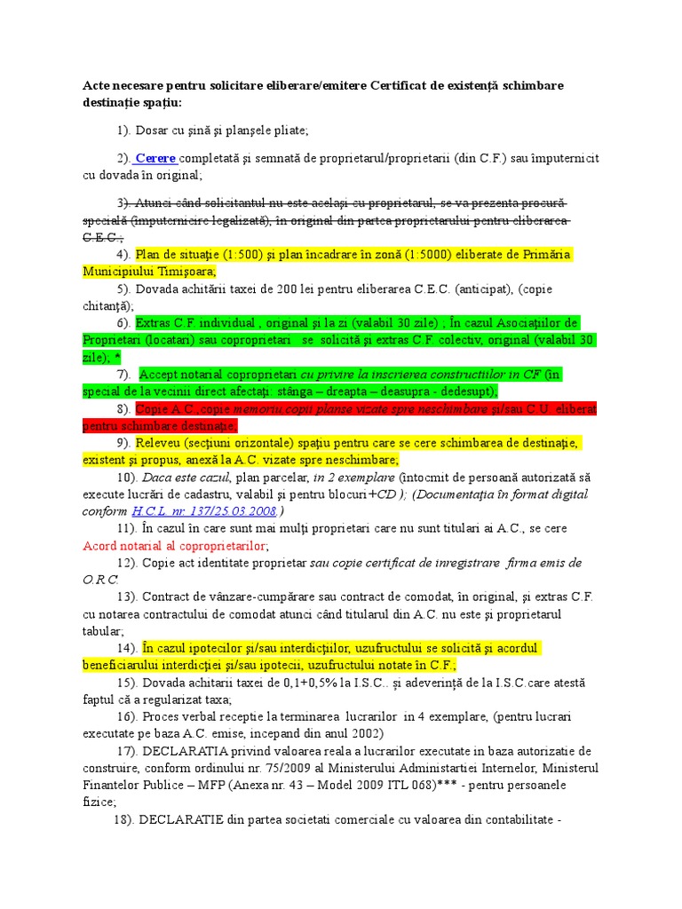 Acte necesare schimbare destinatie spatiu. Schimbarea destinatie descriere constructie sau apartament constructiile si unitatile individuale apartamente au fiecare o anumita destinație la momentul edificării dar pe parcursul existenței construcției sau apartamentului pot apărea situatii in care proprietari să dorească să schimbe destinația initială. Braşov b dul eroilor nr 5 camera 34 jud. Aveți un garaj și vreți să l transformați în spațiu comercial. Acestea va sunt necesare pentru obtinerea certificatului de urbanism pentru schimbare destinatie de la primarie.