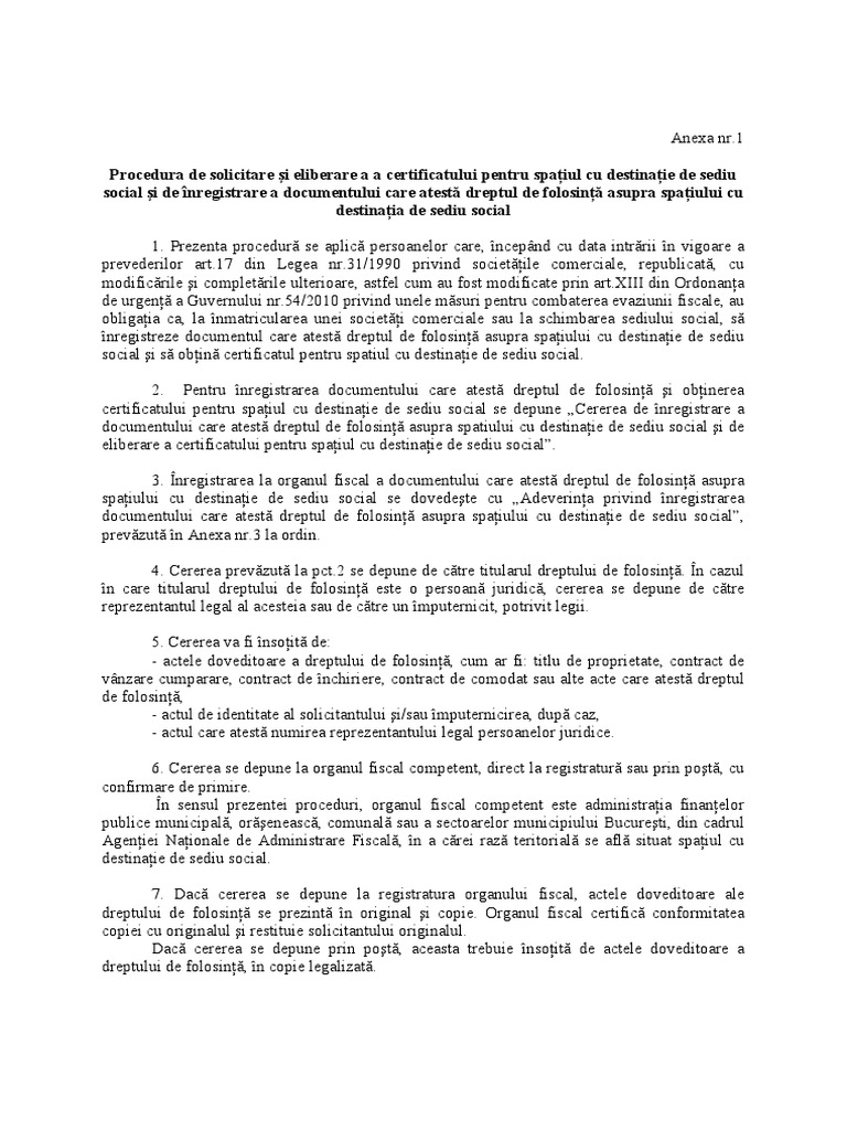 1 cerere tip se primeste de la primarie completata de proprietarul spatiului cu datele de identificare a solicitantului si a imobilului 2. Pentru finalizarea schimbării destinaţiei imobilului mai este necesar şi certificatul de la primărie prin care se atestă schimbarea extrasul de carte funciară actele de identitate ale proprietarilor precum şi schiţele imobilului în cazul în care acestea există. Stiu cum se procedeaza si as vrea sa stiu exact pasii pe care trebuie sa i faca proprietarul unde trebuie sa se duca ce acte trebuie sa depuna si cam in. Potrivit art 42 legea 230 2007 schimbarea destinatiei locuintelor precum si a spatiilor cu alta destinatie decat cea de locuinta fata de destinatia initiala conform proiectului initial al cladirii cu locuinte se poate face numai cu avizul comitetului executiv si cu acceptul proprietarilor direct afectati cu care se invecineaza pe plan orizontal si vertical spatiul supus schimbarii.