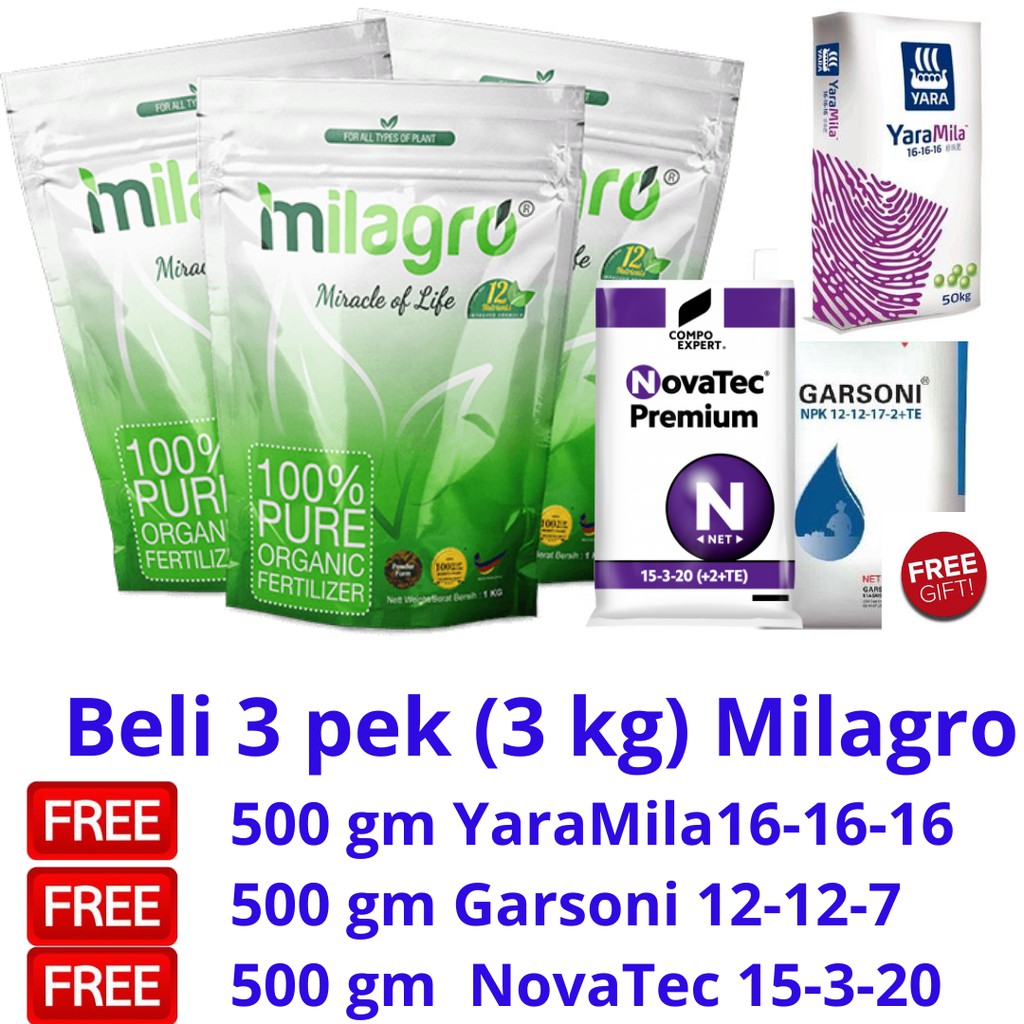 Free 3 Kg Baja Npk Yaramila 16 16 16 Garsoni 12 12 17 Dan Novatec 15 3 20 Beli 4 Pek 4 Kg Baja Organik Milagro Lazada