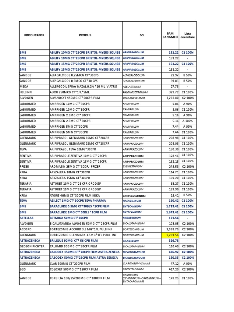 Lista Medicamentelor A B C1 C3 D Valabila 01 08 2018