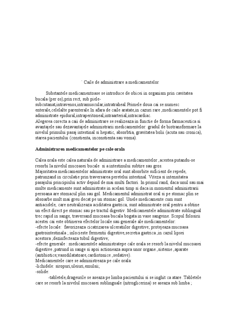 Caile De Administrare A Medicamentelor