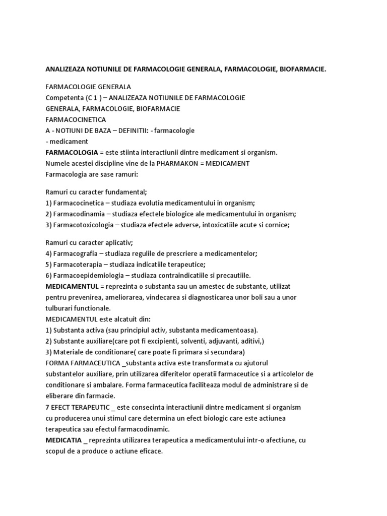 Analizeaza Notiunile De Farmacologie Generala