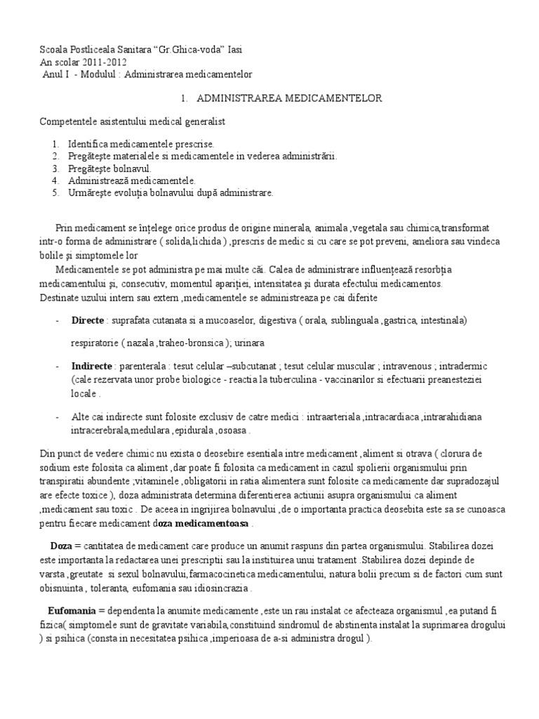 Administrarea Medicamentelor Curs 1 2 Amg
