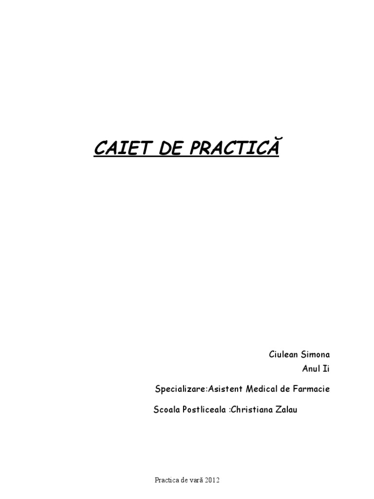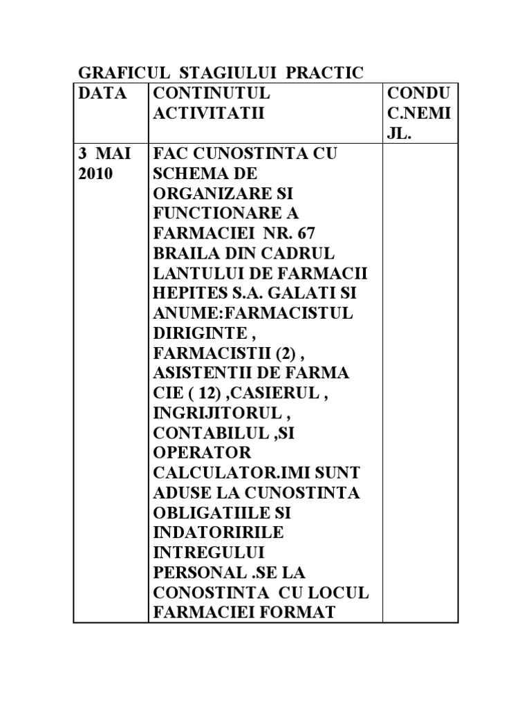 Caiet de practica farmacie anul 1 completat. 1 07 2009 pana la 21 07 2009 total. Convenţie de confidenţialitate 5 6. Regulile de buna practica farmaceutica aprobate in romania se adreseaza urmatoarelor domenii. Modelul certificatului ce urmează să fie completat de instituţia gazdă la finalul.
