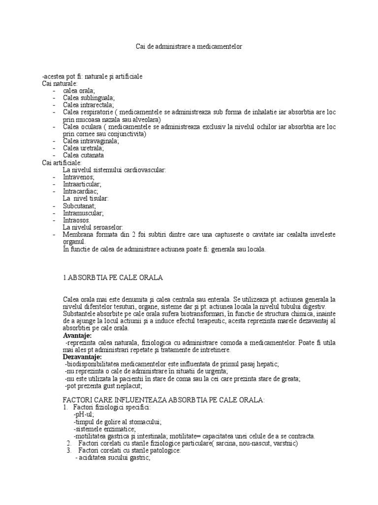 Referat Caile De Administrare A Medicamentelor 293312 Graduo