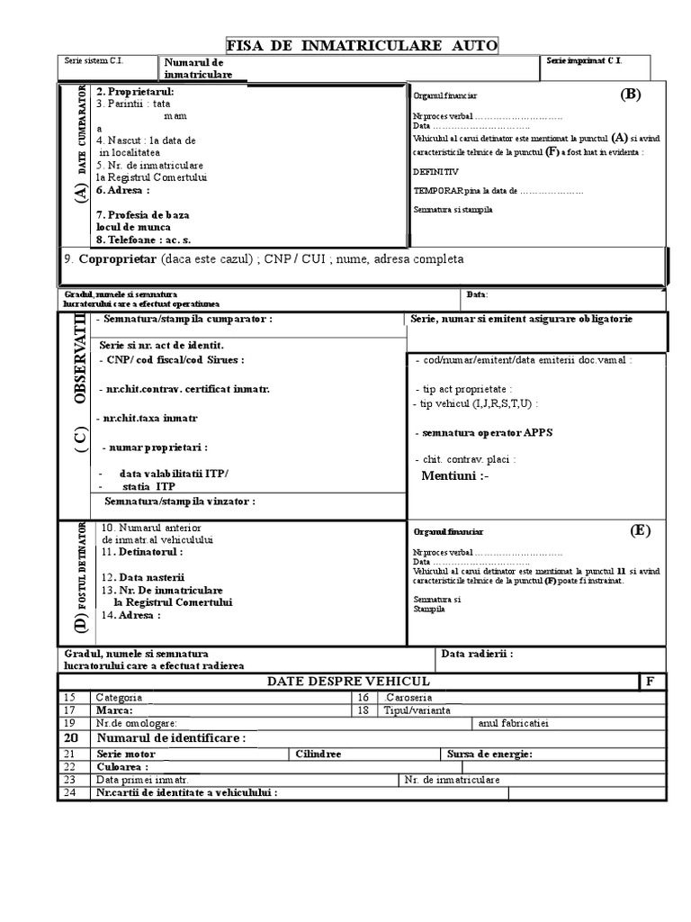 Fisa De Inmatriculare Auto 2020 Word