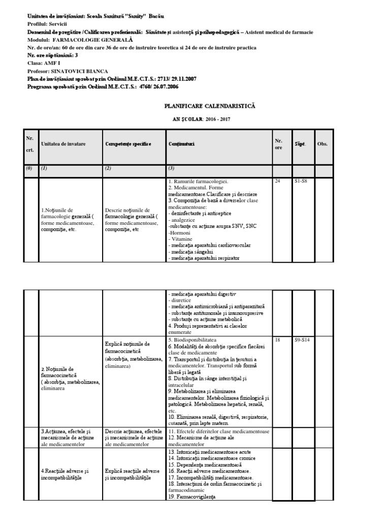 Planificare Farmacologie Generala Docx